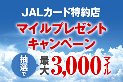 期間中に“たかの友梨”サロンまたはビューティショッピング(通信販売)でJALカードを合計5,000円(税込)以上ご利用いただいた方に抽選で最大3000マイルプレゼント!!