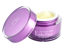 そしてついに2014年、新ブランド「エステファクト」発表の運びとなりました。まず最初に皆さまのお手元にお届けいたしますのは、乳液・化粧水・美容液・クリーム・パック・化粧下地の6つの機能を一本に凝縮させたオールインワンジェルです。洗顔後に洗顔後にこのジェルを一塗りするだけで美肌ケアが完了するという、自信作となりました。