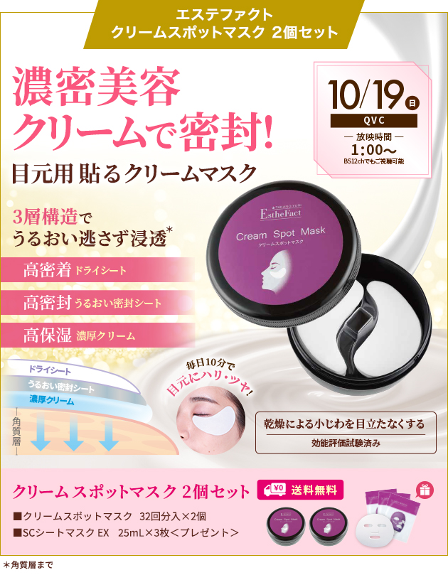 新感覚の「貼るクリームマスク」とローラーつき「アイクリーム」の目元集中ケアセットがQVCに登場!たかの友梨本人が生出演してご紹介します♪