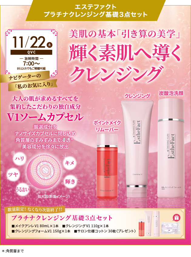 QVCのナビゲーターが、自身の愛用品やお気に入りブランドをご紹介する「私のお気に入り」として、長谷井ナビがプラチナクレンジング基礎3点セットを紹介してくれます♡