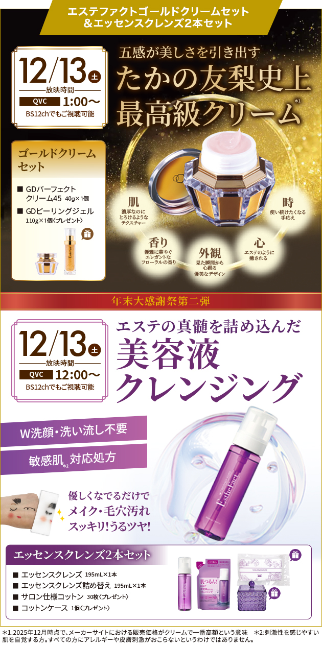 たかの友梨QVC『年末大感謝祭』第二弾は、夜も昼も見逃せない!1日で2アイテムをご紹介!