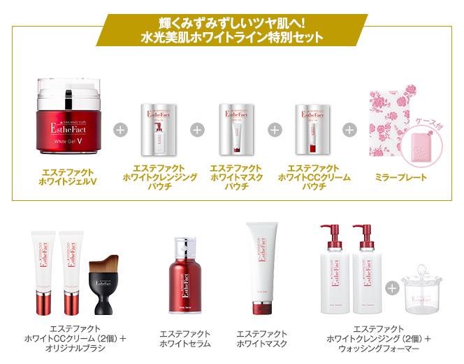 4種類のビタミンC誘導体*など、こだわりの美容成分がたっぷり配合されている「エステファクト ホワイト*ライン」から、ホワイトジェル、ホワイトセラムがお得なボリュームセットで登場!その他、肌くすみ*を払うホワイトマスクも特別価格でご紹介いたします。たかの友梨によるプロの美容情報も!どうぞお見逃しなく♪